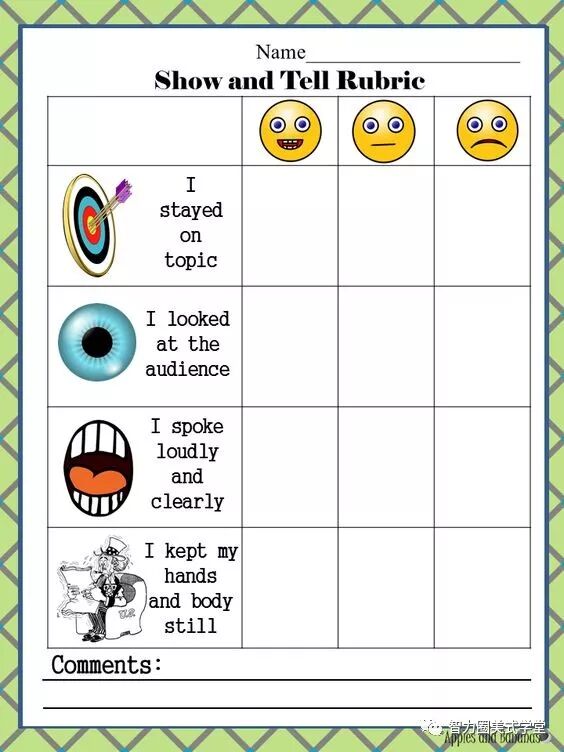 这个话题非常火爆,因为几乎每个孩子都有分享的欲望。我让他们自由地选择想展示的物品,只要是关于他们暑期经验的,都可以带到班上来展示!下面是演讲基本评分标准(适用于7岁以下的孩子,在公众号智力圈美式学堂回复“演讲”下载相关资源):