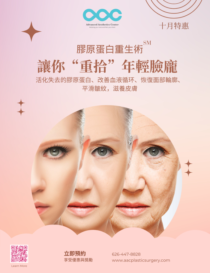 想要重拾年轻紧致的脸庞?AAC真善美整形美容中心全新推出 “胶原蛋白重生术”,深层激活胶原蛋白再生,重塑紧致轮廓,让肌肤焕发青春光彩!