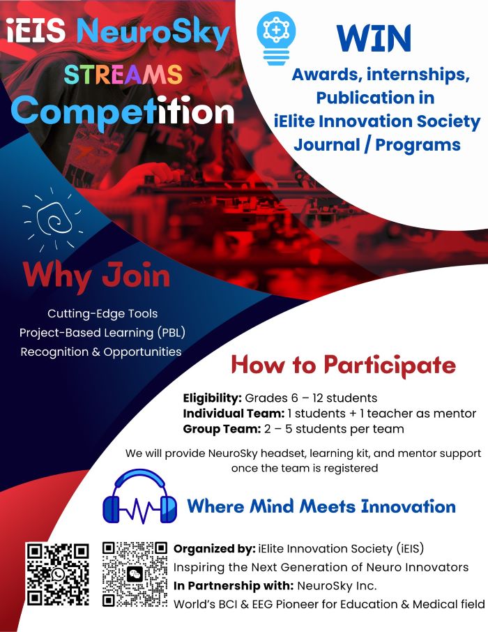 iEIS NeuroSky STREAMS 竞赛邀请全球六至十二年级学生,探索脑波与