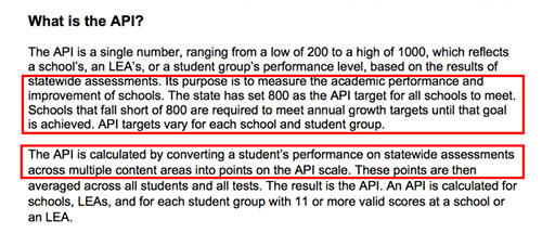 API(Academic Performance Index),即学业表现指数,是美国加州对於一个学校中学生的学术成就和总体发展的综合评价体系。