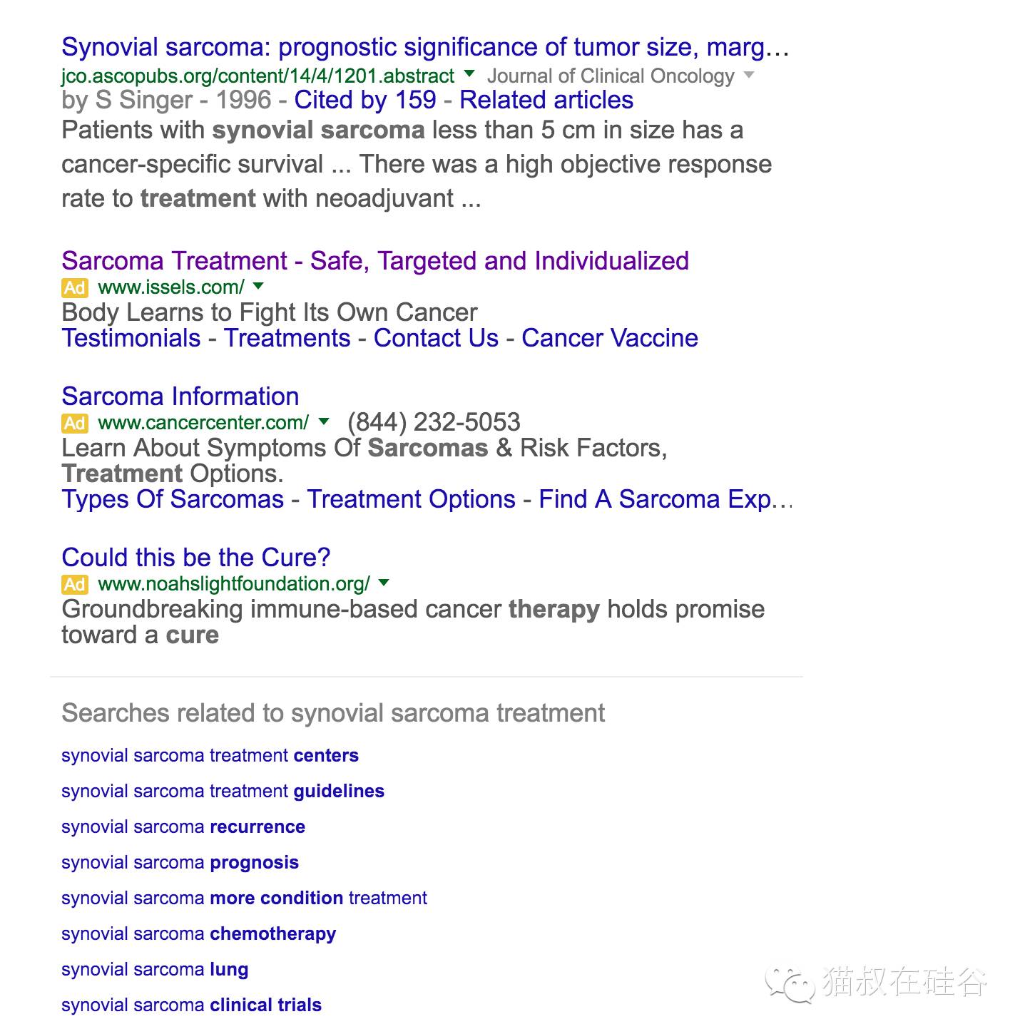 同样在谷歌美国搜索魏则西病症的滑膜肉瘤,会发现谷歌同样也有医疗广告,但却有着更为明显的标识。更为重要的是,与百度标志性的竞价排名相比,谷歌的付费广告并不影响排名。排在前列的始终都是相关百科与官方机构。虽然谷歌的Adwords广告同样是自助服务的,但查询谷歌美国的搜索广告政策可以发现,要在谷歌美国投放药品广告需要获得美国食品与药品监管局(FDA)以及美国药房理事会(NABP)的认证。这意味着只有政府审批的正规网上药店,政府批准的正规药品与治疗,才能在谷歌美国网站投放药品类搜索广告。