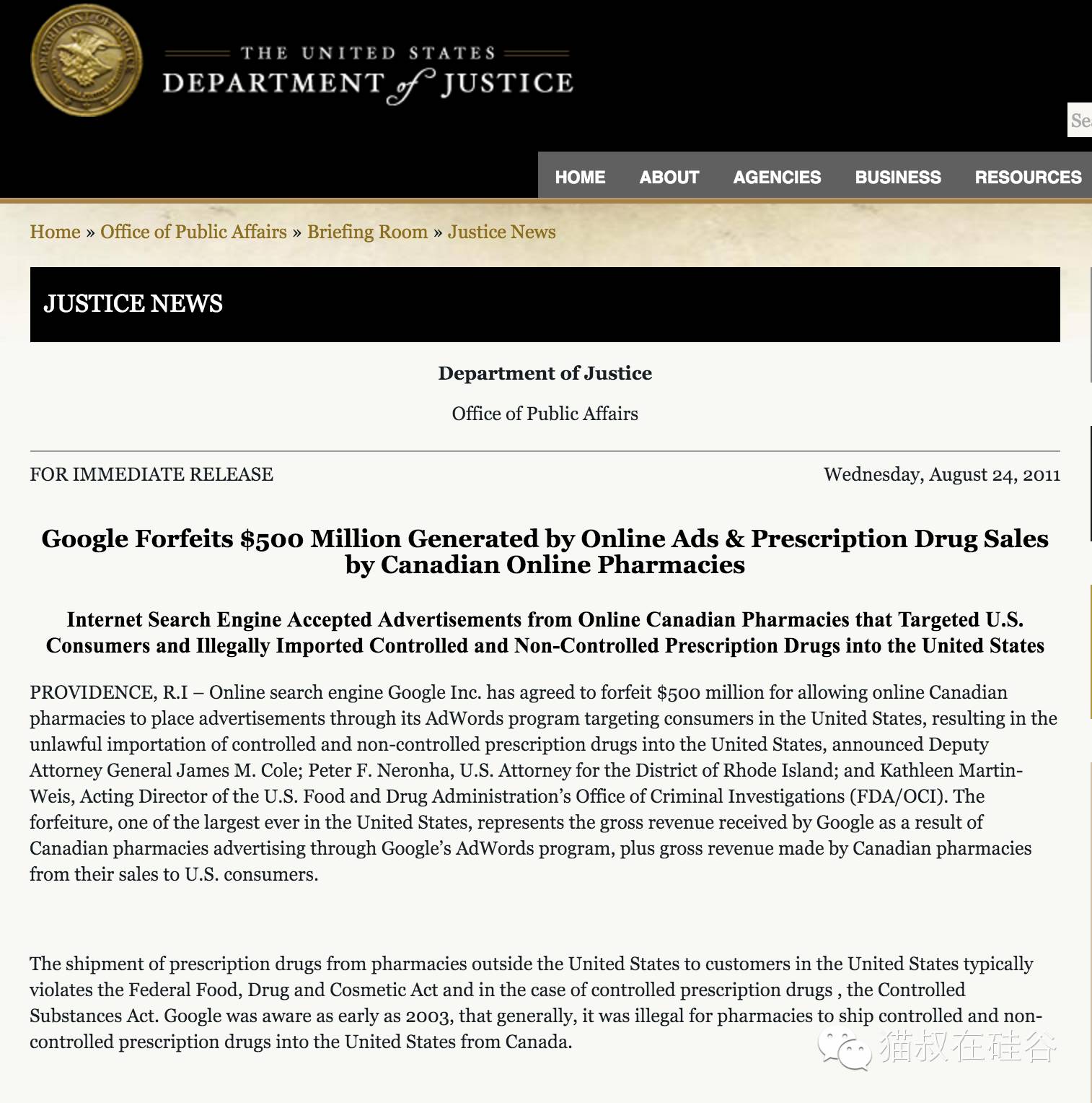 这起钓鱼式执法总计耗费了美国司法机构20万美元,却最终让谷歌付出了5亿美元的天价罚单。为了证明这不是谷歌个别员工的"老鼠屎"行为,美国司法机构指示惠特克分别与谷歌加州、墨西哥以及中国地区的客服代表协作,投放了类固醇药物等相关非法广告,甚至还涉及到严格控制的堕胎药米非司酮和精神类药物。