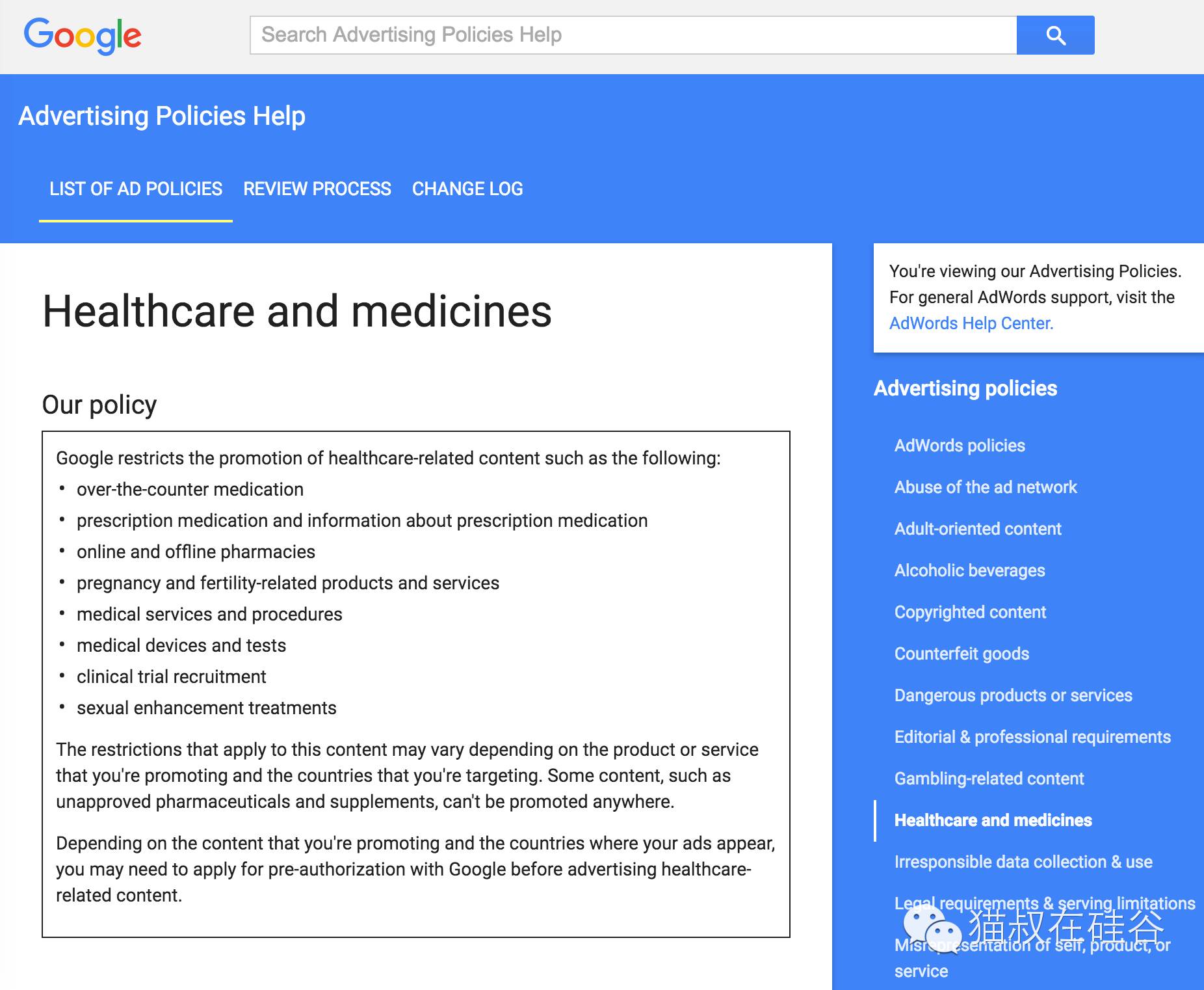 早在2003年,谷歌就因为网络药品广告问题接到美国国会三个不同委员会的调查质询。2004年7月,就在谷歌上市前一个月,由于美国参议员计划通过两项监管网络药店的法案,谷歌负责全球网络广告的副总裁谢莉尔·桑德伯格(Sheryl Sandberg)还赶赴首都华盛顿就这一问题作证。现任Facebook COO的她当时声称,谷歌会通过第三方认证服务来严格审核互联网医疗与药品广告。