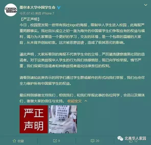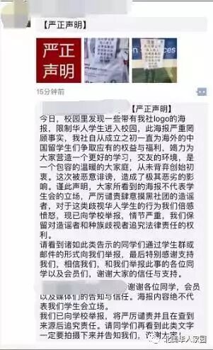 并且学生会表示将联合各大华人社团一起声讨这一事件!