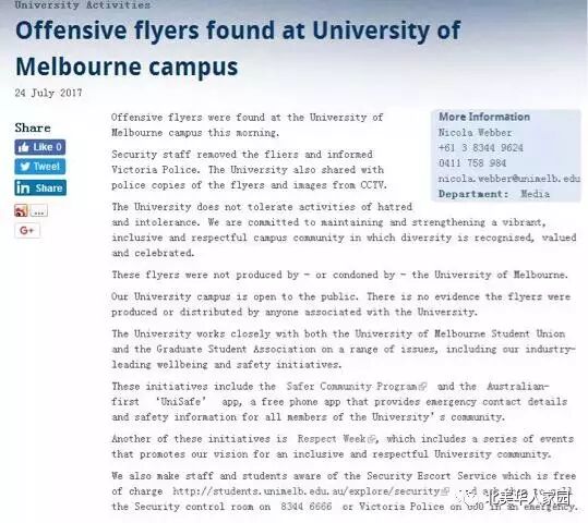 墨尔本大学在得知此事之后也在网站上发表了官方声明: