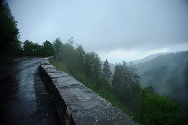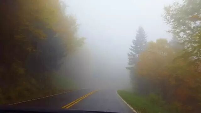 大烟山国家公园是典型的多雨雾的天气,到了夜晚雾气尤其重,如果运气不好赶上下雨,那真的是考验司机驾驶耐心和技术的时候了,大烟山山路弯曲狭窄,一定要小心对向来车,如果有必要可以打双闪前进。