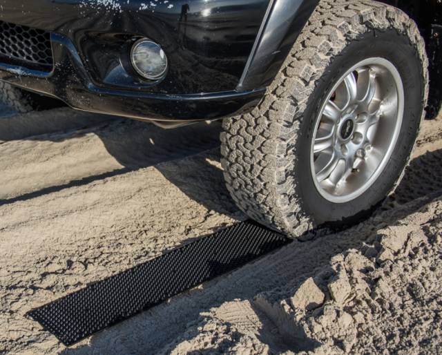 如果您的车辆被卡住,用固体材料(如地板垫)放在轮胎下面以提供牵引力。