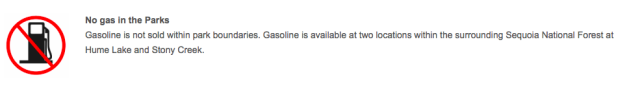 如果在进入国家公园前看到这个标志,一定要在进入该区域前,将邮箱加满。