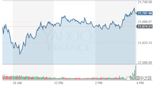 对于周一的美股市场而言,三大股指涨跌幅并不大,投资者们继续谨慎关注地缘政治紧张局势,以及美国国内的政治风险。截至下午收盘,道琼斯工业平均指数上涨29.24点,报21703.75点,涨幅0.13%;纳斯达克综合指数下跌3.4点,报6213.13点,跌幅0.05%;斯坦普500指数上涨2.82点,报2428.37点,涨幅0.12%。能源与金融板块走低。