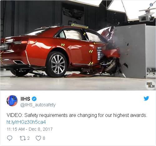 在2018年新的要求下,美国高速公路安全保险协会(Insurance Institute for Highway Safety,简称IIHS)评出最安全的15款汽车,这些车款获得IIHS授予的最高安全评级“顶级安全最佳选择”( Top Safety Pick Plus)。