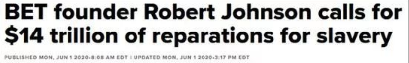 所以14万亿美元,相当于美国黑人要求美国政府,赔偿整整一个中国的生产总值给他们。