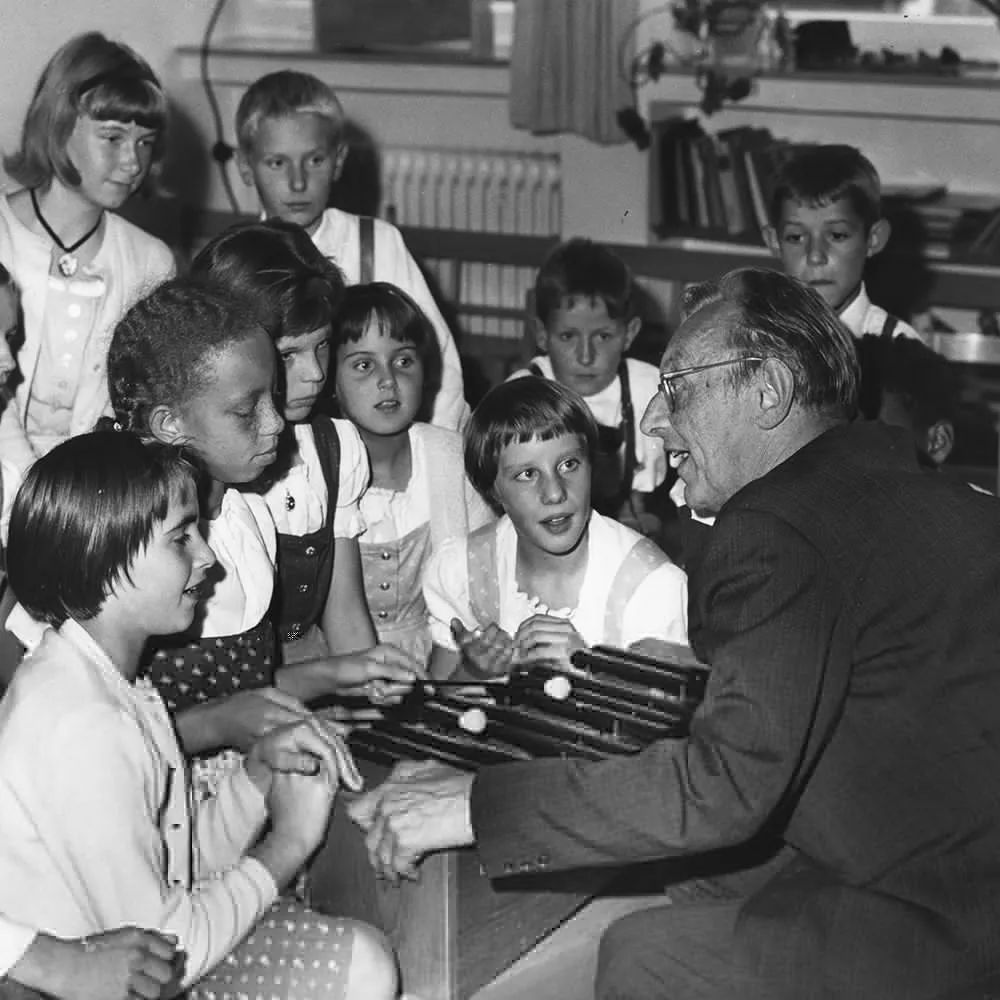 因此他创立了一套所有孩子都会喜欢的音乐课程,这一套课程的理念就被称作奥尔夫教学法。