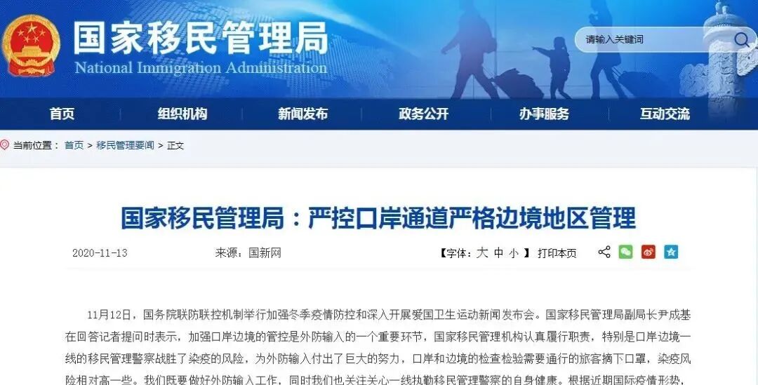 为什么不建议你这个时候回国呢?因为,在11月13日,国务院侨务办公室转发了中国国家移民局的一份最新声明: