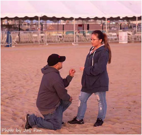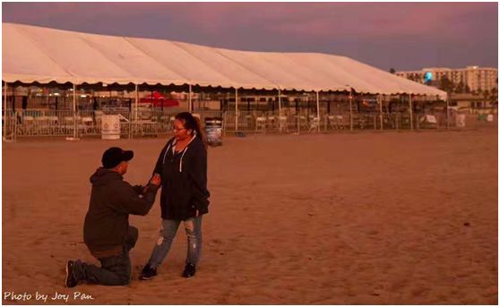 在海滩遇见一对情侣在红霞满天的沙滩上向女友求婚。女孩可能根本就没有想到这一幕,没有任何化妆打扮,牛仔裤都很破旧,男士看我拿着相机在拍晚霞,请我帮他一个忙,我赶紧抓拍。温馨浪漫的普通人的瞬间!