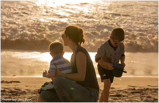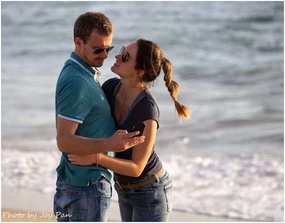 一家四口来自奥地利,度假中,在沙滩上晒太阳、玩水,这对夫妻有时丢下小孩两人玩自拍,惹得小儿子苦恼撒娇。甚是可爱,我帮他们拍下几个镜头,会发邮件给他们。