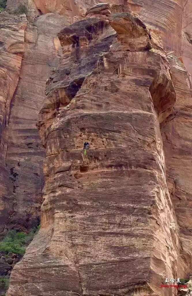 仔细看图中两个蚂蚁似的小人,敬佩攀岩者的勇气。