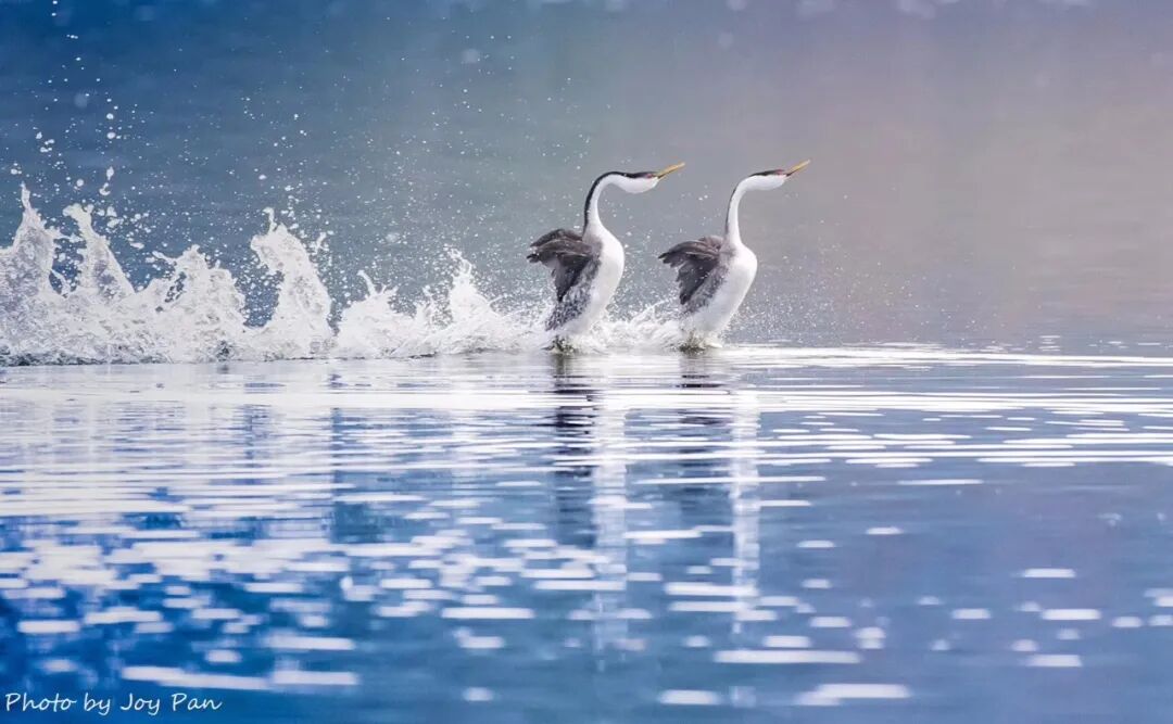 在她们的精神感召下,我与她俩静坐一起,守株拍“鸟”。一个小时无果。因惦记着公司的杂事,我就先走了。后来她们告诉我,我离开后的15分钟,终于近距离拍摄到西鸊鷈的求偶舞蹈,还发给我看,我捶胸顿足都没用。拍鸟除了基本设备、拍摄技术外,还要具备心无旁骛的境界、耐心和专注,堪比钓鱼人。