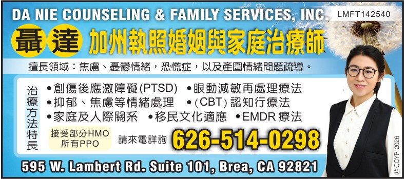 蒙市心理辅导中心/KAYGO CONSULTANTS专精於心理治疗科。蒙市心理辅导中心/KAYGO CONSULTANTS的办公地址在941 S. Atlantic Blvd., #221, Monterey Park, CA, 91754,公司电话是(626) 284-4202,公司营业时间FRI,SAT(9-3)该商家的关键词包含:施静欣 陈丽先 蒋光达 黄鸿生 朗正文 Medicare 红蓝卡 HMO 心理治疗 药物制疗 智力策验 心理评估 奋怒管理 亲子关系